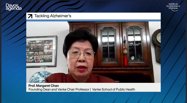 The “Tackling Alzheimer's” session, organized by the Global CEO Initiative on Alzheimer’s Disease (CEOi) and the World Economic Forum, was held on 25th January. The session featured the official launch of the “Davos Alzheimer’s Collaborative (DAC)”, for global public and private institutions. Dr. Margaret Chan, the Founding Dean of the Vanke School of Public Health at Tsinghua University, was invited and delivered a speech in the online session. Among the other invited speakers were Dr. Haruo Naito, Representative Corporate Officer and Chief Executive Officer, Eisai Co. Ltd, and Dr. Andrea Pfeifer, CEO of AC Immune SA. The session was moderated by George Vradenburg III, Convener, Global CEO Initiative on Alzheimer's Disease.