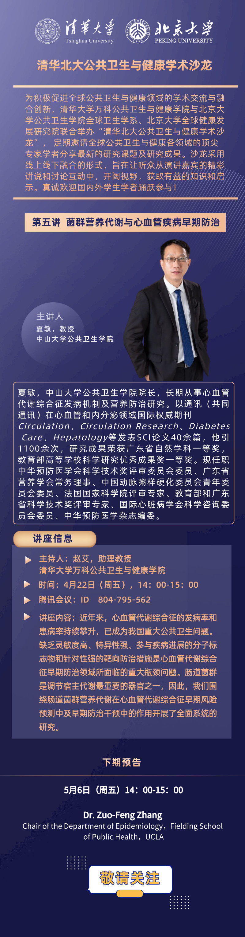 【清华北大公共卫生与健康学术沙龙】 夏敏:菌群营养代谢与心血管疾病早期防治