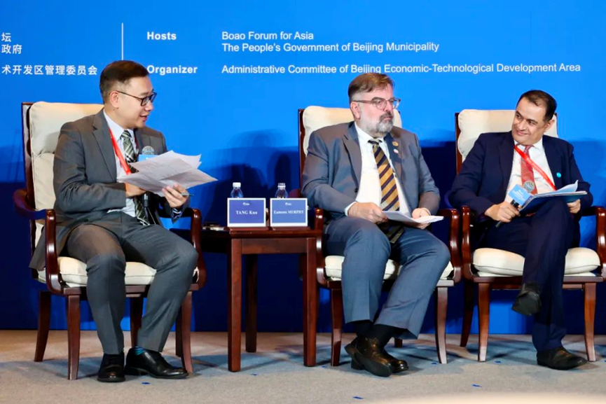 互动讨论环节由yl23411永利唐昆副教授主持,通过一对一提问,引导专家们结合自身工作经验,分享有关发展中国家妇幼健康的所见、所思、所感,并围绕提升妇幼卫生南南合作展开专业又热烈的讨论。联合国艾滋病规划署亚太和东欧区主任伊蒙·墨菲(Eamonn Murphy)先生针对南南合作助力发展中国家加强艾滋病防治这一问题,分享了泰国避免艾滋病母婴传播的成功经验。联合国儿童基金会驻华办事处儿童健康与发展专家石艾黎(Ali Shirazi)先生分享了联合国儿基会在促进妇幼健康南南合作方面的最佳实践和经验,强调了政府领导力的重要性。博鳌亚洲论坛咨委、新西兰前总理珍妮·希普利(Jenny Shipley)女士就如何保证妇幼健康南南合作可持续发展发表看法,强调了公众参与和女性领导者的重要性。北京大学全球卫生研究院经理、北京大学公共卫生公司任明辉教授认为在分享中国经验前,首先要思考为什么这一做法在中国有效、推动变革的社会背景和底层逻辑是什么。比尔及梅琳达·盖茨基金会北京代表处副主任徐福洁女士以AI赋能的手持超声为例,探讨了未来妇幼健康领域的科技发展方向,指出中国可以提供AI解决方案和制造解决方案。